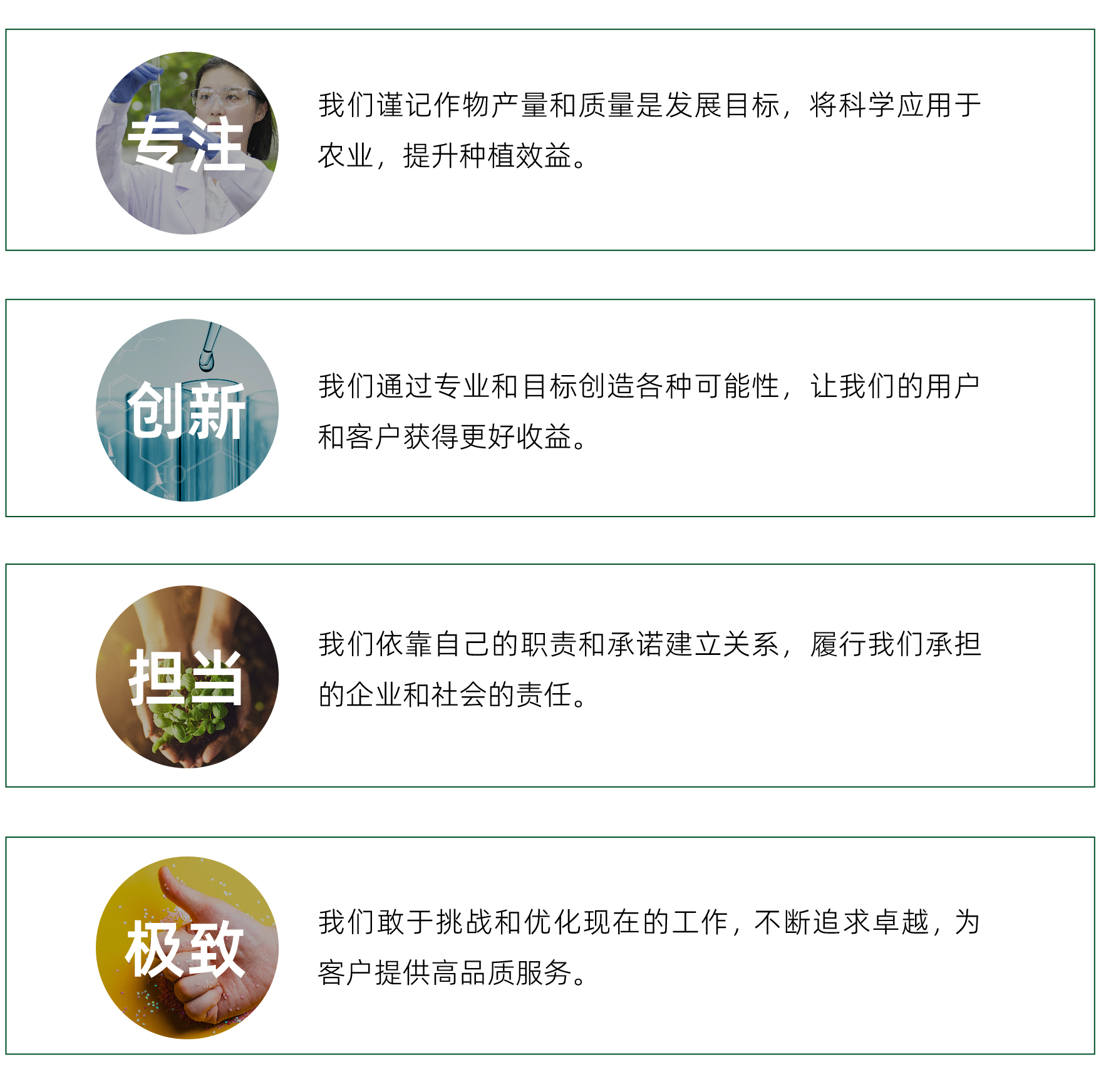 樂(lè)多收?qǐng)?jiān)守“為農(nóng)業(yè)種植創(chuàng)造可持續(xù)的未來(lái)”的使命擔(dān)當(dāng),懷抱“成為全球領(lǐng)先作物方案提供商”的美好愿景,秉持“專注、創(chuàng)新、擔(dān)當(dāng)、極致”的核心價(jià)值觀,堅(jiān)持“用技術(shù)驅(qū)動(dòng)成長(zhǎng)”的產(chǎn)品理念,讓我們的客戶和用戶獲得更好經(jīng)濟(jì)收益。